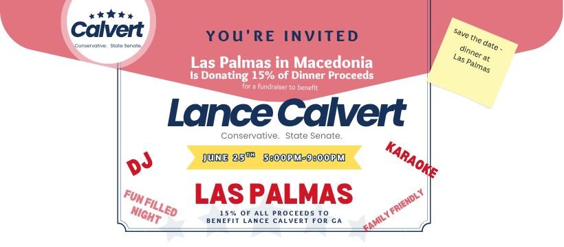 Join us for dinner at Las Palmas and help Lance Calvert at the same time. Learn more about Lances campaign. Grab a sign. Commit to voting.